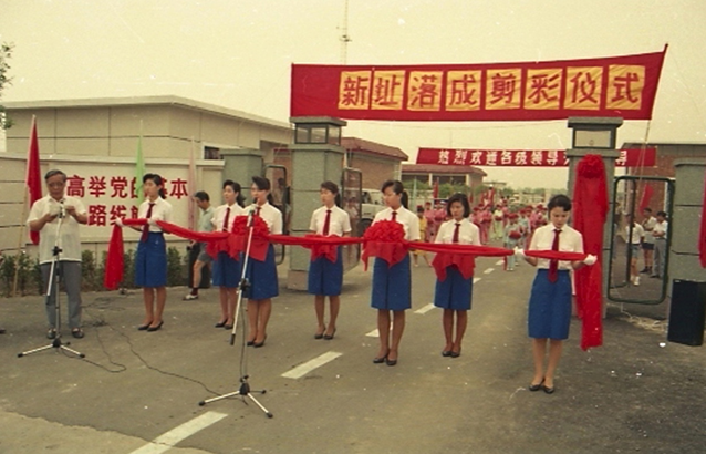安達(dá)辦公地點遷入新址----天津東麗區(qū)外環(huán)線張貴莊鐵路橋東。(圖為:時任東麗區(qū)委書記張繼光區(qū)長王學(xué)思參加安達(dá)新址落成剪彩儀式)) -