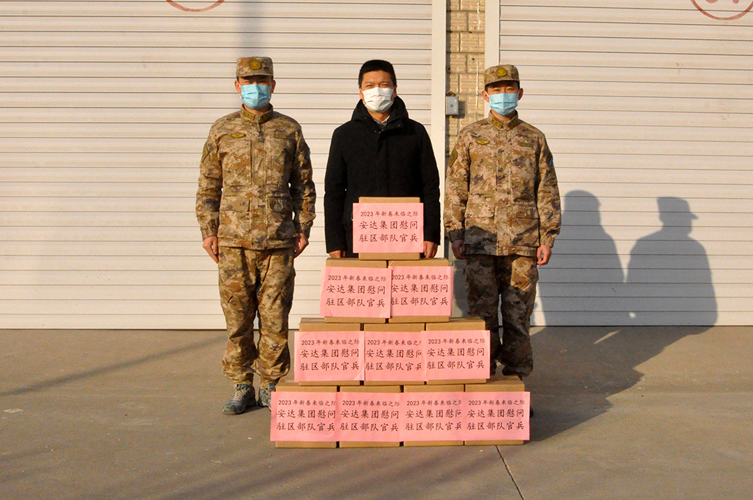 10日2023-01在春節(jié)來臨之際,安達集團董事長助理王俊鵬代表安達集團及集團黨委書記、董事長崔洪金,赴駐津部隊進行慰問。為津門子弟兵送去慰問品和節(jié)日的問候,部隊主要負責人熱情接待。 [查看詳情]