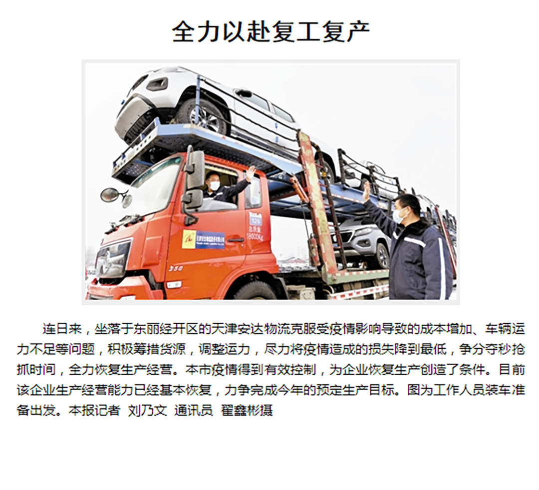 1月28日《天津東麗》第17版 克服疫情影響 保障物流順暢