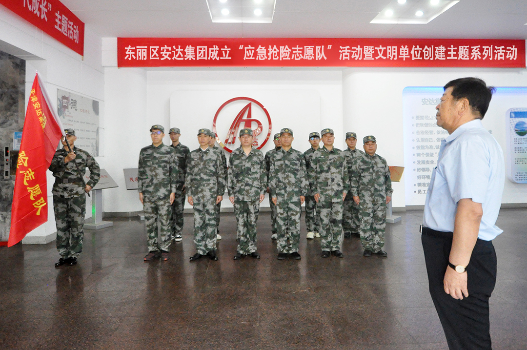 為進(jìn)一步提高安達(dá)集團(tuán)應(yīng)急救援響應(yīng)處置能力,及時應(yīng)對集團(tuán)及社會出現(xiàn)的重大突發(fā)搶險救援事件,集團(tuán)黨委決定成立一支能力強(qiáng)反應(yīng)快的應(yīng)急搶險志愿服務(wù)隊。7月11日上午,在安達(dá)集團(tuán)辦公室和后勤保障部的統(tǒng)一安排下,安達(dá)集團(tuán)應(yīng)急搶險志愿隊正式成立,并在一樓大廳舉行授旗儀式。
