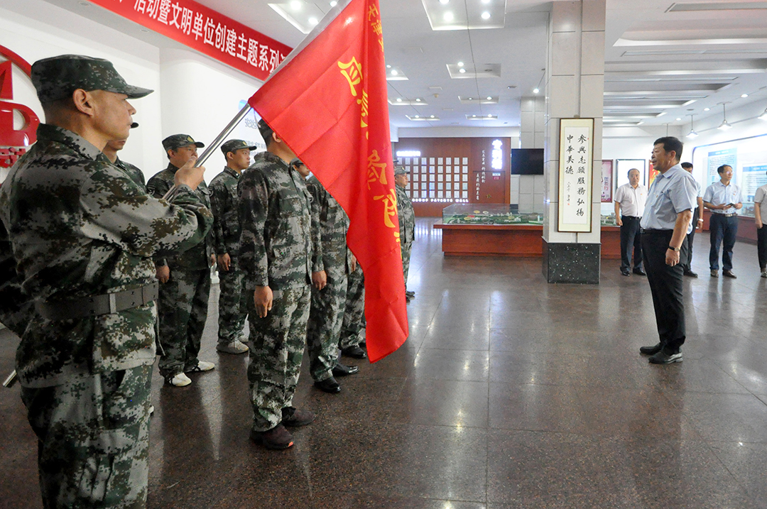 安達(dá)集團(tuán)黨委書記、董事長崔洪金作為應(yīng)急搶險志愿隊的總指揮,親自將隊旗授予應(yīng)急搶險志愿隊隊長有波同志手中。儀式上,友波隊長代表全隊向崔洪金總指揮承諾:志愿隊35名隊員將不斷提高自身快速反應(yīng)能力、應(yīng)急處置能力和綜合協(xié)調(diào)作戰(zhàn)能力,時刻準(zhǔn)備著在險情出現(xiàn)時貢獻(xiàn)力量,爭做一只聞令而動,聽令而行的優(yōu)秀隊伍。