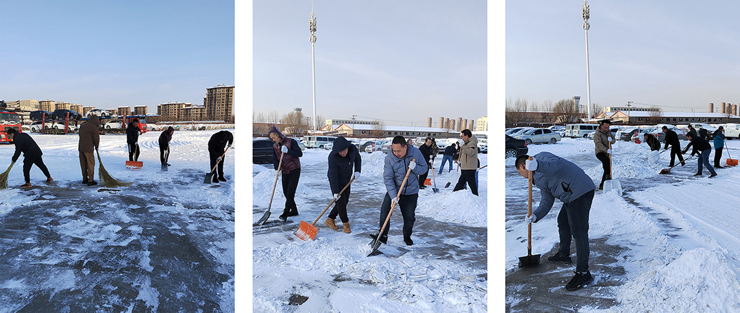 天氣寒冷絲毫不減大家的勞動熱情,所有人員不退縮、不畏難,大家擰成一股繩,一起全力勞動。聽,這邊有人說“何姐,我來吧”,“我來我來,我是黨員又是支部書記我?guī)ь^”。無論男女,大家齊心協(xié)力,個個想著沖鋒在前,打掃起來也是井然有序、配合默契,忙碌的身影構成一道靚麗的風景線,一會兒工夫,就清理出了一大片路面,為公司職工的出行提供了極大方便。雖然室外溫度低,路面積雪清理難度大,但大家勞動的熱情和團結的力量讓寒冷的天氣變得格外溫暖。