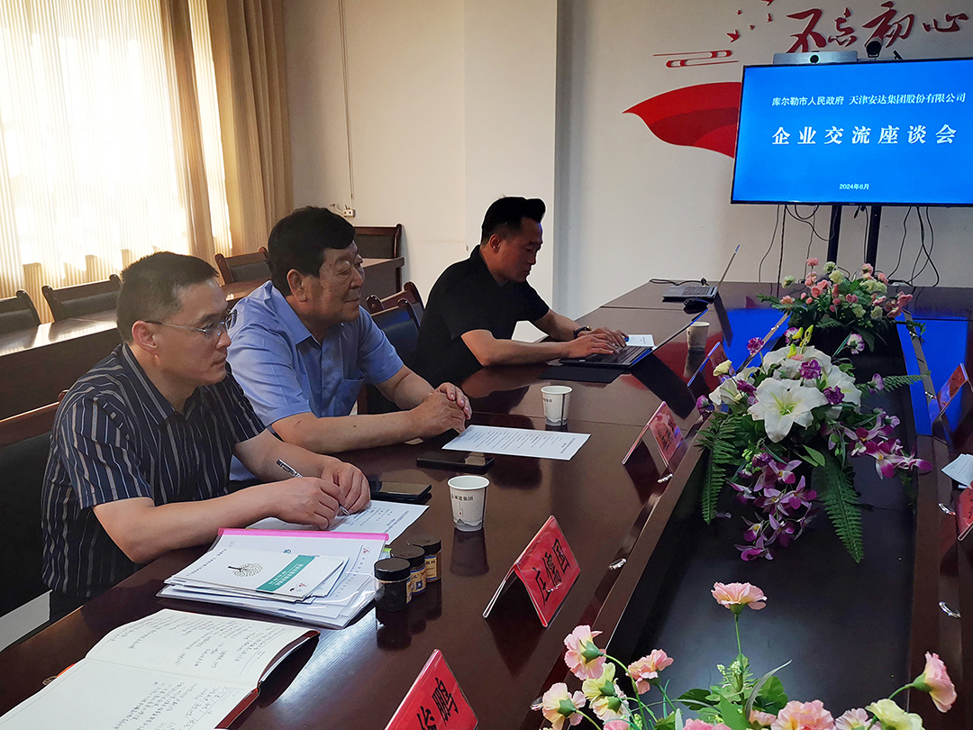 當(dāng)天下午,庫爾勒市政府副市長楊松波、庫爾勒市商務(wù)和工業(yè)信息化局黨組書記、副局長王偉,庫爾勒市退役軍人事務(wù)局、市容環(huán)衛(wèi)事務(wù)中心、商工局、上庫高新產(chǎn)業(yè)技術(shù)開發(fā)區(qū)分管領(lǐng)導(dǎo)與安達集團黨委書記、董事長崔洪金,安達集團董事長助理王俊鵬,安達集團分公司天津鴻達精工機械有限公司經(jīng)理莊儒國以及財金城倉(庫爾勒)環(huán)??萍加邢薰靖笨偨?jīng)理吳江濤共同參加座談會。