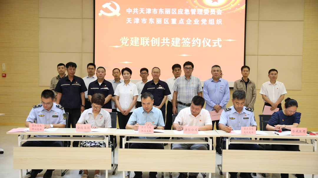 安達集團第一黨支部與東麗區(qū)應急管理事務中心黨支部成功簽訂聯(lián)創(chuàng)共建協(xié)議書。