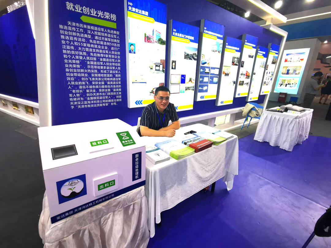 展會交流期間,安達(dá)集團(tuán)參會代表王俊鵬向與會嘉賓詳細(xì)地介紹了安達(dá)集團(tuán)的企業(yè)發(fā)展歷程以及多年來所取得的豐碩創(chuàng)業(yè)成果。他還向與會的軍創(chuàng)企業(yè)家及領(lǐng)導(dǎo)們著重推薦了安達(dá)集團(tuán)最新的綠色項目 ——“泔凈沃土” 牌廚余垃圾及農(nóng)業(yè)廢物處理設(shè)備。通過對兩大系列產(chǎn)品的應(yīng)用與推廣優(yōu)勢的深度闡釋,生動還原了綠色低碳環(huán)保設(shè)備的卓越特性,并對該項目的閉環(huán)發(fā)展進(jìn)行了全面而細(xì)致的闡述。