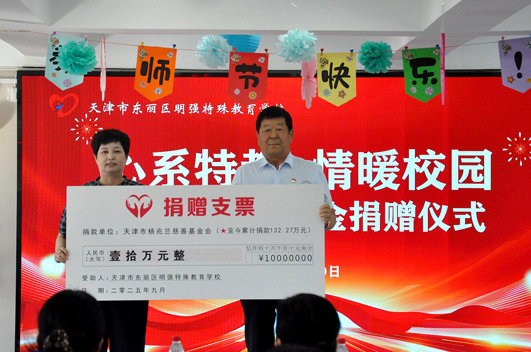 在全國第 41 個(gè)教師節(jié)來臨之際,東麗區(qū)明強(qiáng)特殊教育學(xué)校舉辦 “以教育家精神鑄魂強(qiáng)師,譜寫教育強(qiáng)國建設(shè)華章” 主題慶?;顒印0策_(dá)集團(tuán)黨委書記、董事長崔洪金作為學(xué)校名譽(yù)校長受邀出席,不僅現(xiàn)場發(fā)表重要講話致敬特教教師,更以天津市楊兆蘭慈善基金會名義向?qū)W校捐款 10 萬元,專項(xiàng)用于改善教學(xué)設(shè)施、提升康復(fù)條件及賦能教師發(fā)展,用實(shí)際行動為特殊教育事業(yè)注入溫暖力量。