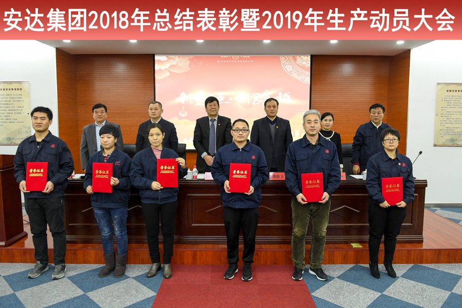 黨委書記、董事長崔洪金首先對獲獎的團體、個人表達了由衷的祝賀并在大會上作出重要講話,他指出:2018年,是貫徹黨的十九大精神的開局之年,是改革開放40周年,同時也是安達集團成立的第30個年頭。面對國際經(jīng)濟形勢的復(fù)雜多變,面對改革開放的全面深化,面對市場不確定因素的進一步增多,面對政策制度的不斷調(diào)整,全體安達人不忘初心,正視挑戰(zhàn),積極作為,迎難而上,整體經(jīng)營形勢逐步好轉(zhuǎn)。相比去年,物流板塊在產(chǎn)值上有所突破;機械板塊平穩(wěn)中有亮點;電子和生物制藥板塊蓄勢待發(fā),銷售服務(wù)探索前行,春天在向我們招手。同時2019年,將是安達集團滾石上山,爬坡較勁的攻堅之年,強化改革、戰(zhàn)勝困難的轉(zhuǎn)折之年,夯實基礎(chǔ)、強力發(fā)展的關(guān)鍵之年,我們面臨機遇,也面臨挑戰(zhàn),齊心協(xié)力、克服困難、創(chuàng)新發(fā)展是我們的不二選擇。希望大家:一是要認清形勢,抓住機遇,融入國家發(fā)展戰(zhàn)略;二是弘揚傳統(tǒng),激勵斗志,持之以恒穩(wěn)步向前;三是健全制度,創(chuàng)新模式,科學(xué)管理,提高效益;四是齊心協(xié)力,加快發(fā)展,增強員工的獲得感。安達人團結(jié)一心,眾志成城,安達集團定將屹立潮頭,取得更加輝宏的成就!