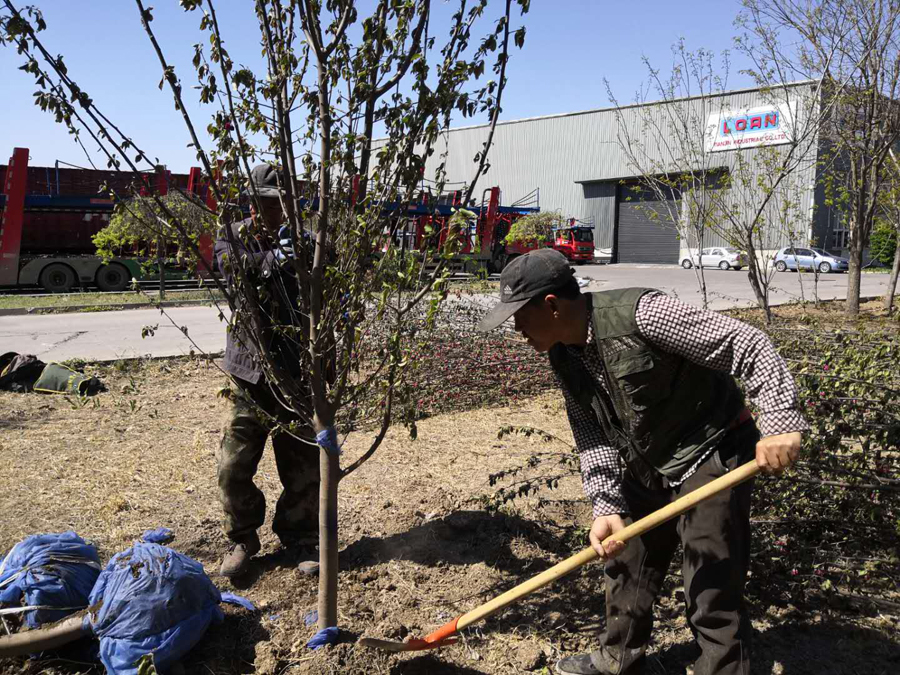 時(shí)間緊任務(wù)重,為高效完成植樹任務(wù),施工方甚至啟用了起重機(jī),經(jīng)過一番熱火朝天的勞動(dòng),所有樹苗迎風(fēng)挺立,廠院內(nèi)被裝點(diǎn)的更加生機(jī)盎然。