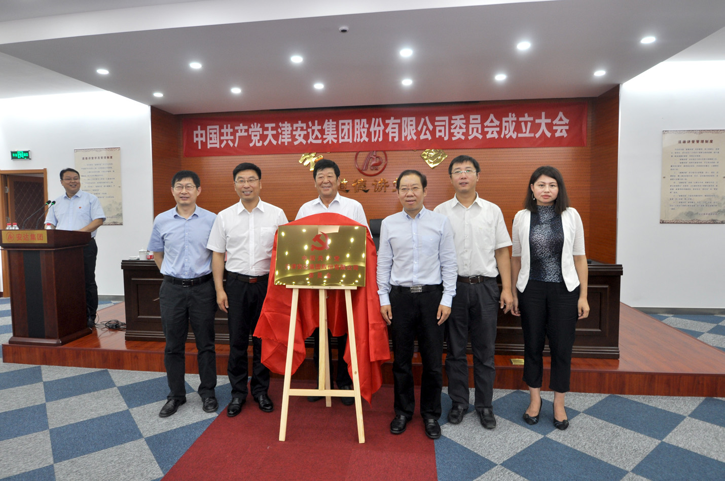 會上區(qū)工商聯(lián)調(diào)研員會員企業(yè)黨委委員劉樹義宣讀有關天津安達集團股份有限公司黨委成立的批復,市工商聯(lián)黨組書記劉道剛攜手區(qū)委副書記白鳳祥共同為安達集團黨委揭牌,安達集團黨委書記董事長崔洪金發(fā)表講話。